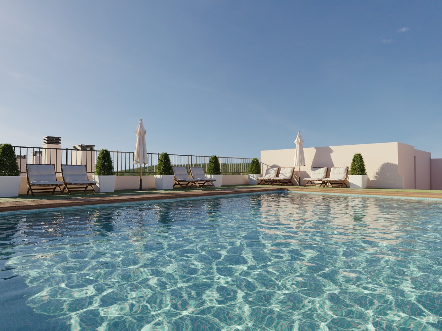 Viens no lielākajiem ieguvumiem ir koplietošanas baseins uz jumta – lieliska vieta atpūtai, sauļošanās baudīšanai un Vidusjūras klimata izbaudīšanai ar skatu uz pilsētu.