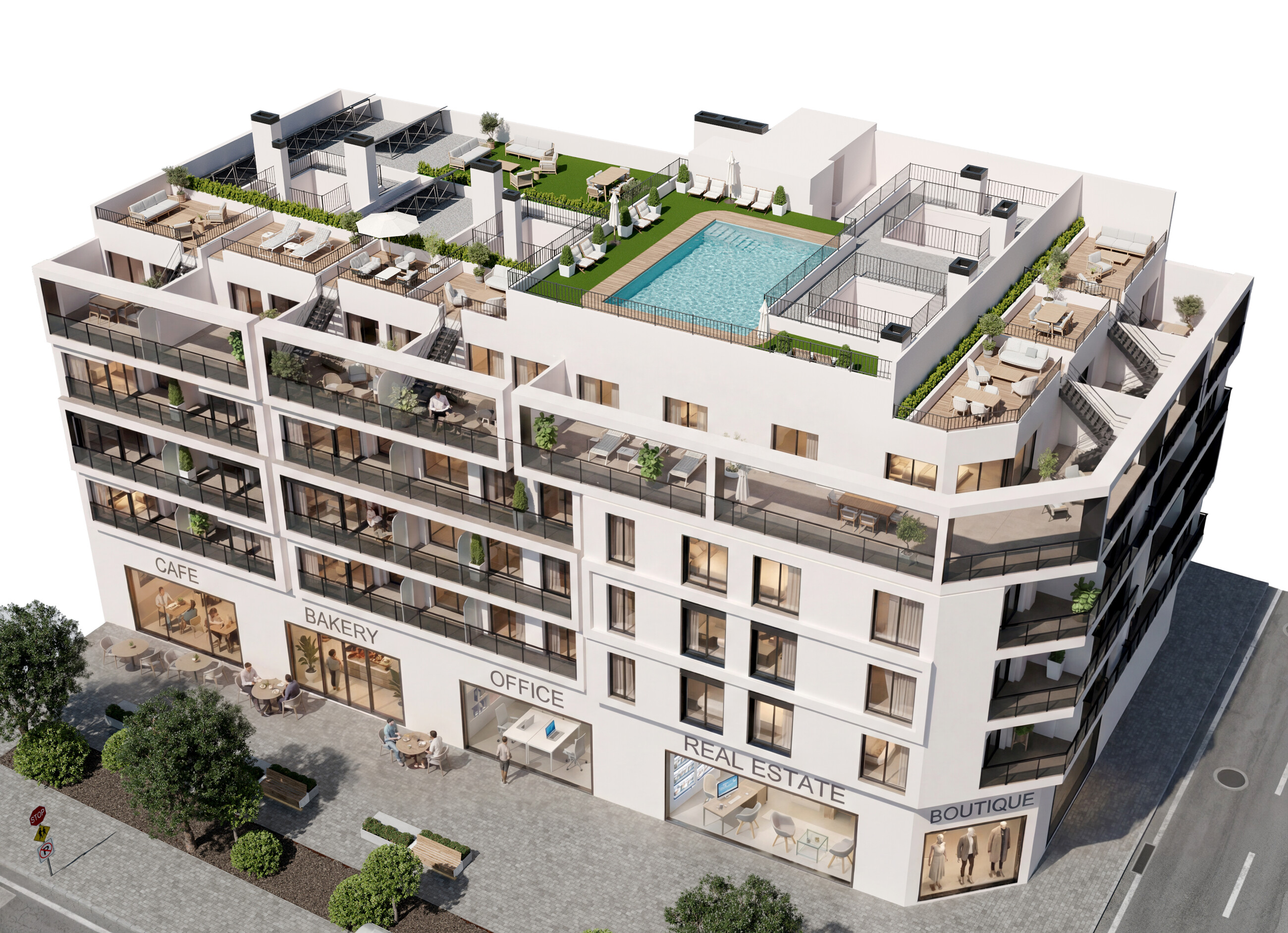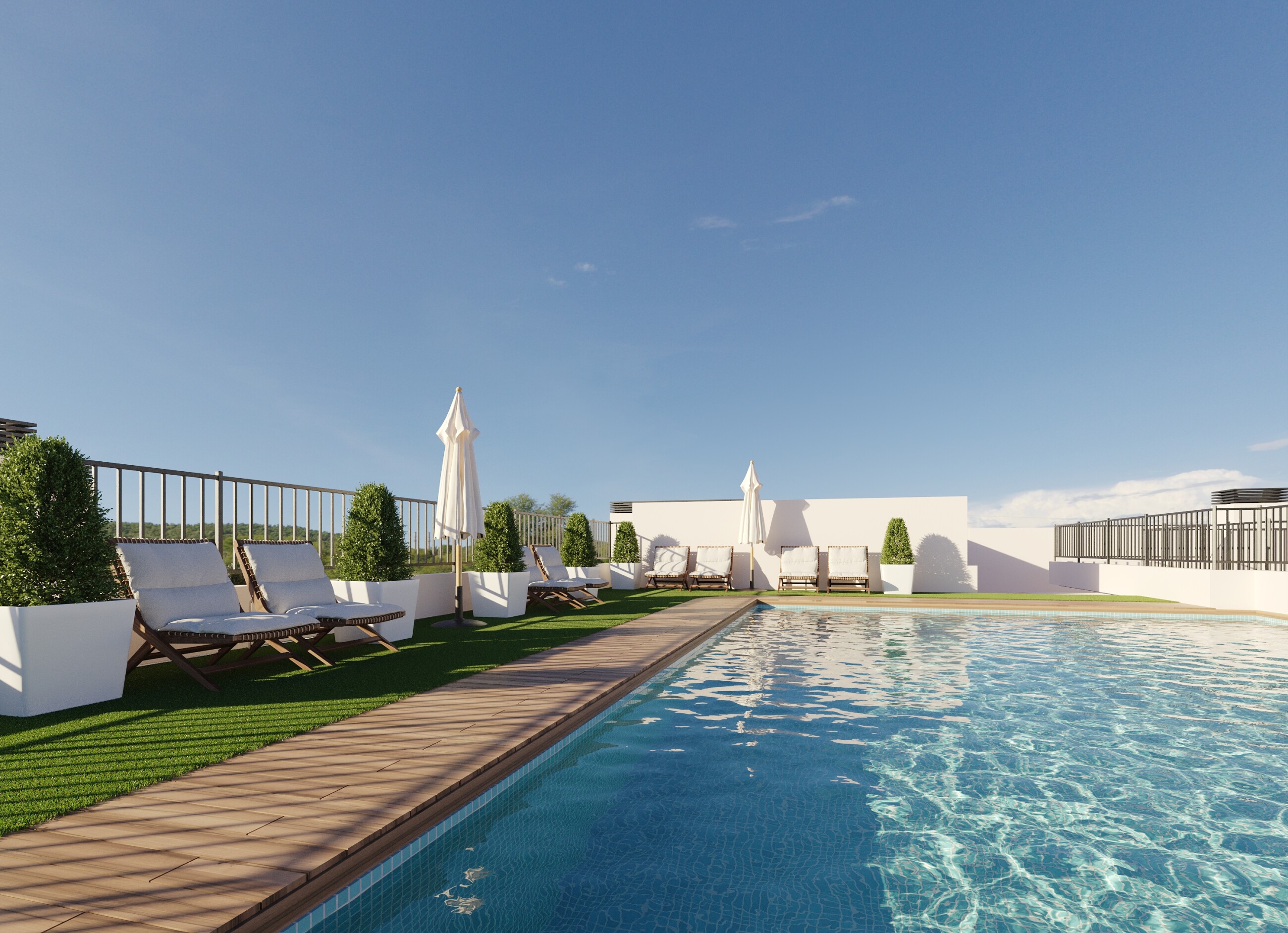 Viens no lielākajiem ieguvumiem ir koplietošanas baseins uz jumta – lieliska vieta atpūtai, sauļošanās baudīšanai un Vidusjūras klimata izbaudīšanai ar skatu uz pilsētu.