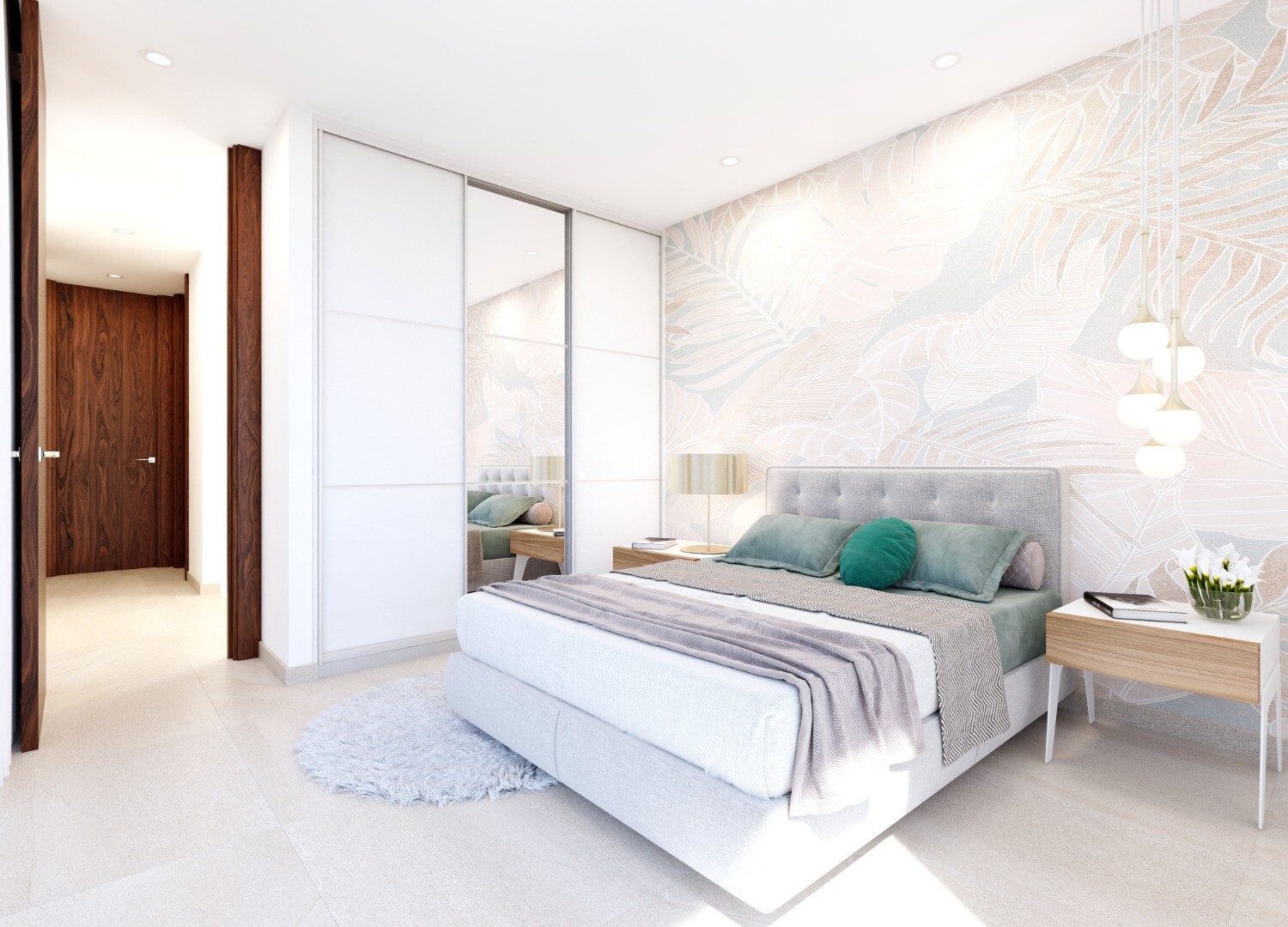 Living between the sea and the mountains, in the Sierra Cortina Urbanisation, just a few minutes from Benidorm, has a name: Residencial SEAVIEW 5. Here you can buy a new build villa with private pool and garden. The villas have 3 bedrooms, 3 bathrooms, living - dining room and open concept kitchen. The kitchen is delivered furnished and with induction hob and extractor hood installed. They have pre-installation for hot and cold air-conditioning and installation of home automation. As in all ESPHOUSES developments, SEAVIEW 5 has been built to the highest quality standards, using top quality equipment and materials from brands such as Florim, Villeroy & Boch, Hansgrohe, Bosch, BTicino, Cortizo and Blum.